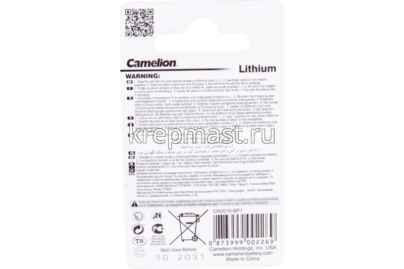 Батарейка Camelion CR2016 в интернет-магазине «Мастер Крепежа» по цене 66 руб. Более 12 наименований товаров в наличии в категории Батарейка ТАБЛЕТКА. Купить батарейка camelion cr2016 в Зеленодольске выгодно Вы можете on-line на нашем сайте, или отправив заявку по почте, а также по телефону или в пункте выдачи компании г. Казань, ул. Татарстан, 9, магазин "Мастер Крепежа". Доставка по Республике Татарстан и другие регионы РФ.