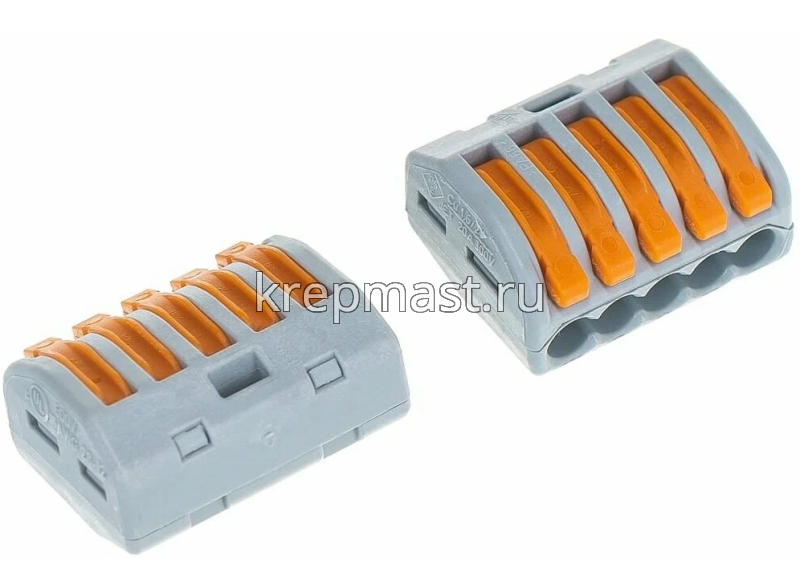 Соединительная 5-ти проводная клемма WAGO СК 412 используется для соединения проводов с одной или несколькими жилами, а также разных сечений.