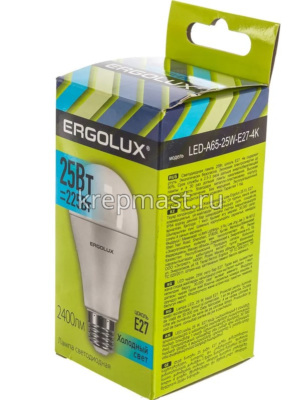 Лампа А65 25Вт Е27 4500К в интернет-магазине «Мастер Крепежа» по цене 199 руб. Более 11 наименований товаров в наличии в категории Лампы светодиод. А60. Купить лампа а65 25вт е27 4500к в Зеленодольске выгодно Вы можете on-line на нашем сайте, или отправив заявку по почте, а также по телефону или в пункте выдачи компании г. Казань, ул. Татарстан, 9, магазин "Мастер Крепежа". Доставка по Республике Татарстан и другие регионы РФ.