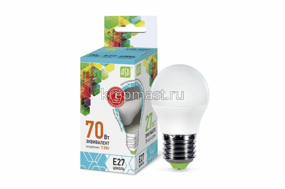 Лампа шарик 7,5Вт Е27 4000К ASD