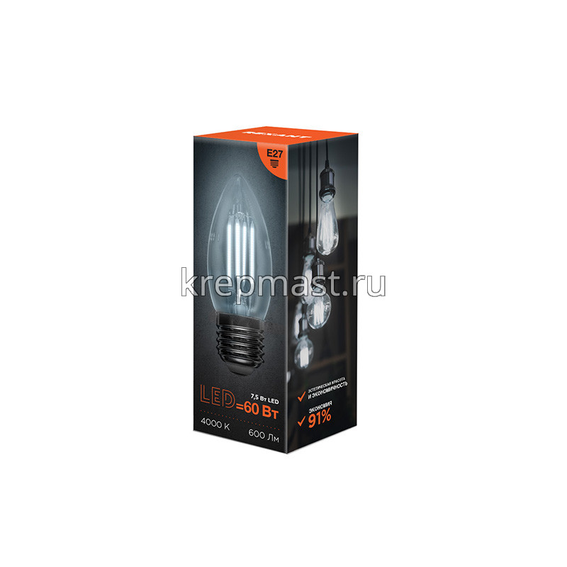 Лампа свеча 7,5Вт Е27 4000K в интернет-магазине «Мастер Крепежа» по цене 122 руб. Более 12 наименований товаров в наличии в категории Лампы светодиод. СВЕЧА. Купить лампа свеча 7,5вт е27 4000k в Зеленодольске выгодно Вы можете on-line на нашем сайте, или отправив заявку по почте, а также по телефону или в пункте выдачи компании г. Казань, ул. Татарстан, 9, магазин "Мастер Крепежа". Доставка по Республике Татарстан и другие регионы РФ.
