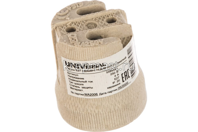 Патрон Е27 фарфоровый (рифленый) в интернет-магазине «Мастер Крепежа» по цене 24 руб. Более 9 наименований товаров в наличии в категории Патроны. Купить патрон е27 фарфоровый (рифленый) в Зеленодольске выгодно Вы можете on-line на нашем сайте, или отправив заявку по почте, а также по телефону или в пункте выдачи компании г. Казань, ул. Татарстан, 9, магазин "Мастер Крепежа". Доставка по Республике Татарстан и другие регионы РФ.
