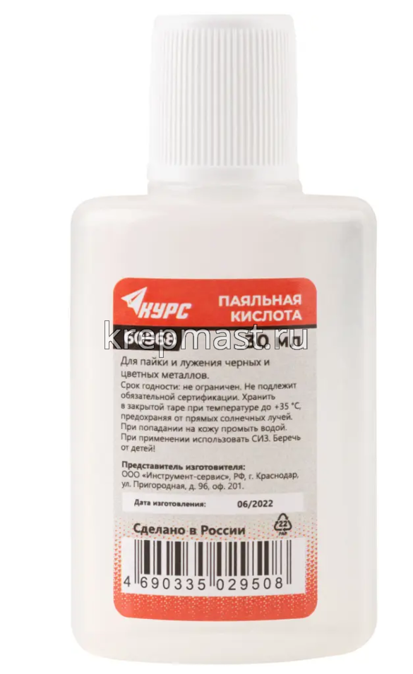 Кислота паяльная 30мл (высокоактивный флюс на основе хлористых солей цинка) в интернет-магазине «Мастер Крепежа» по цене 86 руб. Более 19 наименований товаров в наличии в категории Наборы для пайки. Купить кислота паяльная 30мл (высокоактивный флюс на основе хлористых солей цинка) в Зеленодольске выгодно Вы можете on-line на нашем сайте, или отправив заявку по почте, а также по телефону или в пункте выдачи компании г. Казань, ул. Татарстан, 9, магазин "Мастер Крепежа". Доставка по Республике Татарстан и другие регионы РФ.