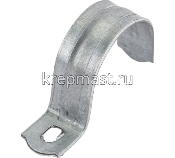 Металлическая скоба однолапковая 25-26 мм крепёжная деталь в виде изогнутой металлической полосы, усиленная ребром жесткости с крепежными отверстиями по краям. Скоба оцинкованная выполнена из оцинкованной стали для стойкости к атмосферным осадкам.