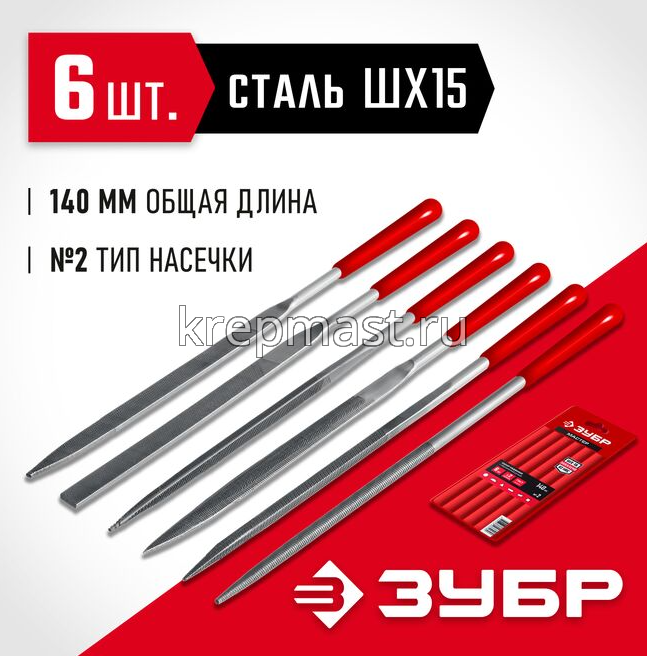 Набор надфилей 6 шт 140 мм, в чехле, с ручками ЗУБР 16014-H6 - профессиональный режущий инструмент для тонкой обработки металлических поверхностей: для тонкого опиливания, зачистки поверхностей, доводки небольших деталей.