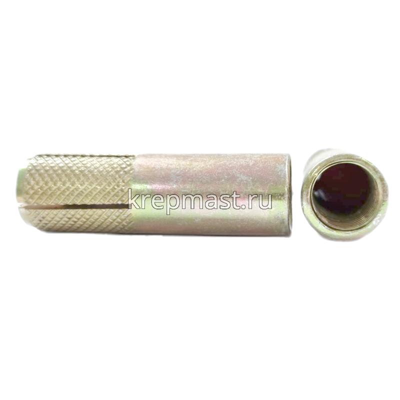 Забиваемый анкер М 16 применяется для крпеления конструкций к бетону, природному камню, кирпичу. Забивной анкер имеет внутреннюю резьбу и конусообразныый клин. Такой анкер расклинивается специальным инструментом.