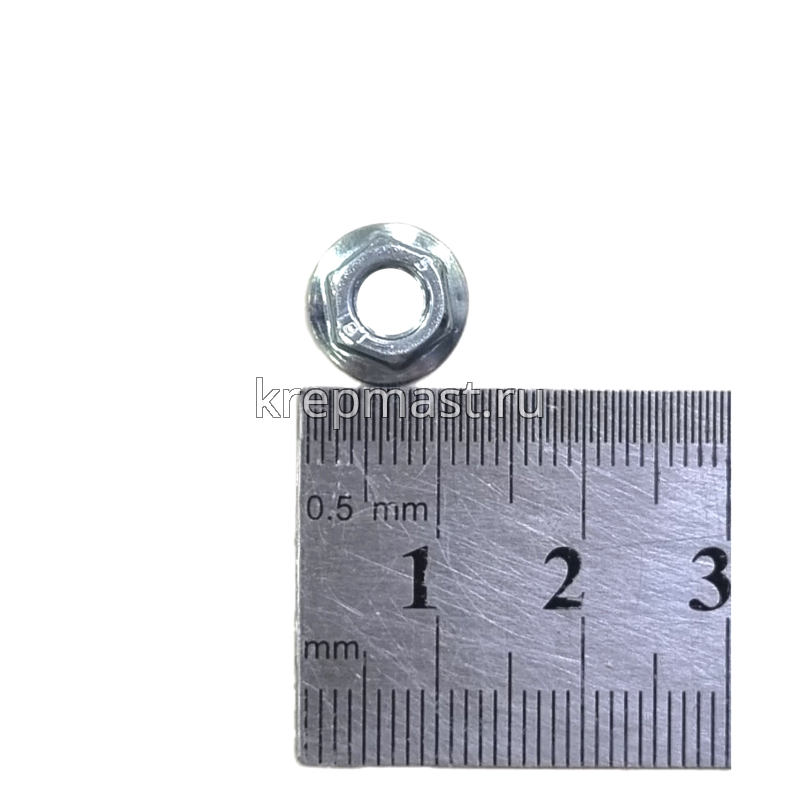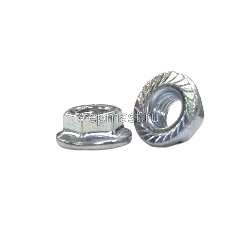 Гайка с фланцем М 5 DIN 6923 крепежный элемент, совмещающий в себе шестигранную гайку с одной стороны и фланец (плоскую деталь круглой формы) — с другой.
