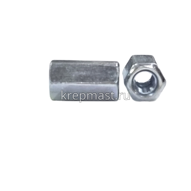Соединительная гайка М6 DIN 6334 (шестигранная резьбовая муфта) применяется в качестве соединительного элемента при наращивании и удлинении резьбовых изделий: шпилек, болтов, анкеров с резьбой.