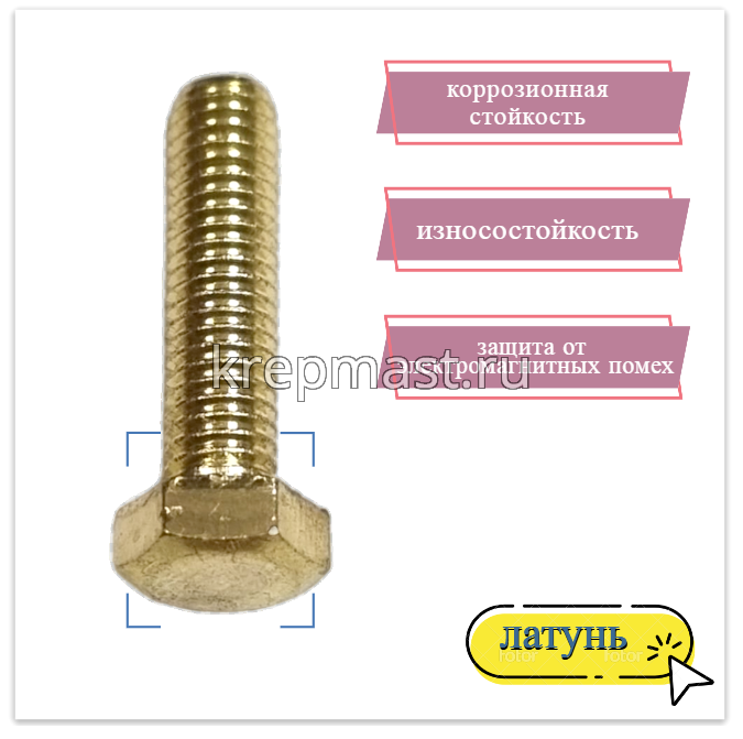 Болт М5 х 20 DIN 933используется в случае, когда необходимо создать немагнитный узел. Латунный болт М5 применяется в приборостроении, авиации, атомной промышленности. Латунный крепеж стоек к органическим кислотам и углекислым растворам.