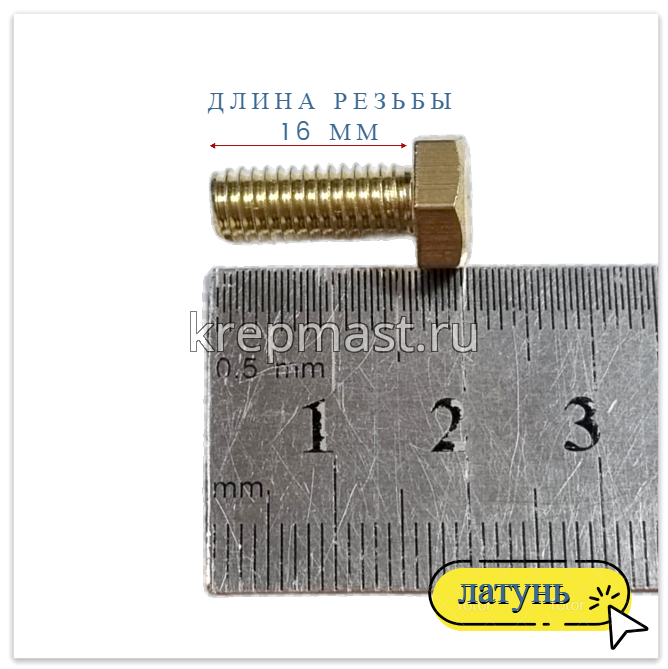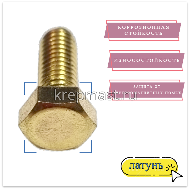 Болт 6х16 DIN 933 латунь в интернет-магазине «Мастер Крепежа» по цене 46 руб. Более 26 наименований товаров в наличии в категории Болты латунные DIN 933. Купить болт 6х16 din 933 латунь в Зеленодольске выгодно Вы можете on-line на нашем сайте, или отправив заявку по почте, а также по телефону или в пункте выдачи компании г. Казань, ул. Татарстан, 9, магазин "Мастер Крепежа". Доставка по Республике Татарстан и другие регионы РФ.