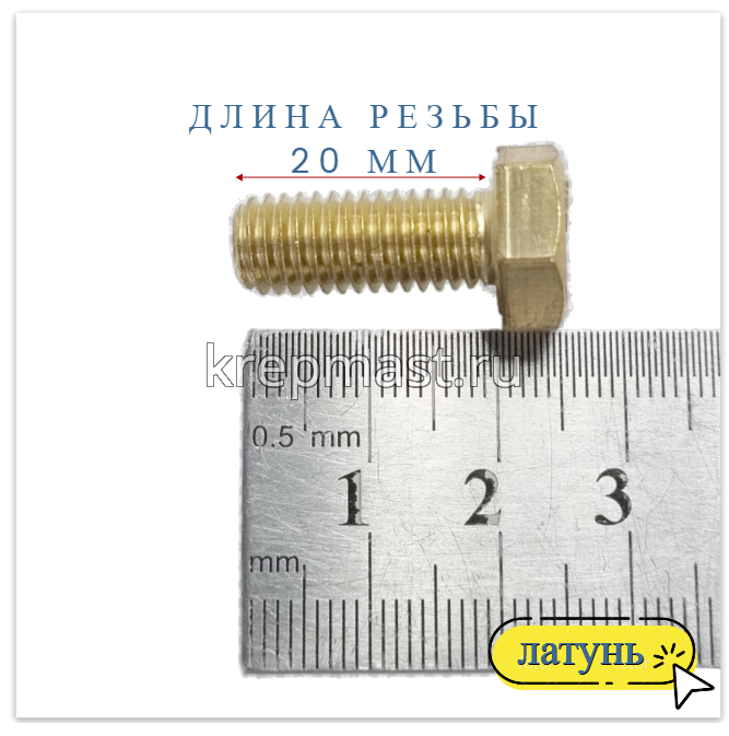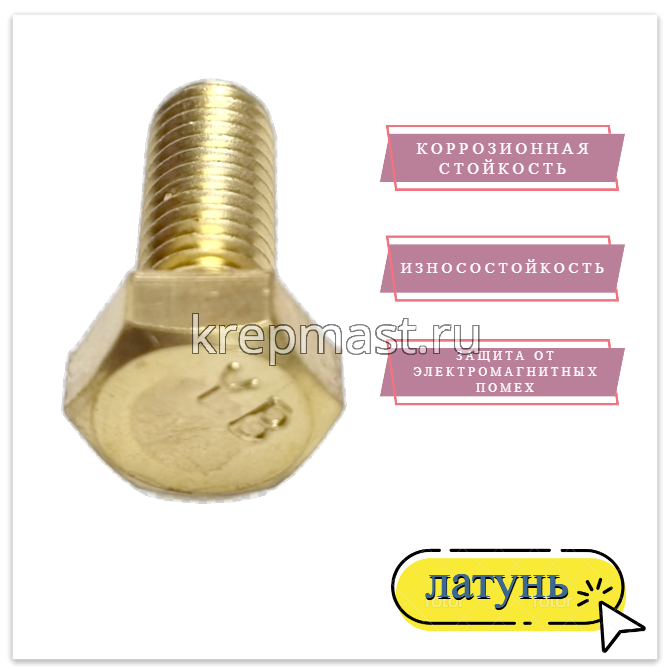 Болт 8х20 DIN 933 латунь в интернет-магазине «Мастер Крепежа» по цене 99 руб. Более 26 наименований товаров в наличии в категории Болты латунные DIN 933. Купить болт 8х20 din 933 латунь в Зеленодольске выгодно Вы можете on-line на нашем сайте, или отправив заявку по почте, а также по телефону или в пункте выдачи компании г. Казань, ул. Татарстан, 9, магазин "Мастер Крепежа". Доставка по Республике Татарстан и другие регионы РФ.