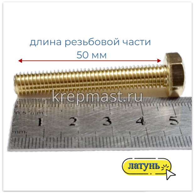 Болт 8х50 DIN 933 латунь в интернет-магазине «Мастер Крепежа» по цене 306 руб. Более 26 наименований товаров в наличии в категории Болты латунные DIN 933. Купить болт 8х50 din 933 латунь в Зеленодольске выгодно Вы можете on-line на нашем сайте, или отправив заявку по почте, а также по телефону или в пункте выдачи компании г. Казань, ул. Татарстан, 9, магазин "Мастер Крепежа". Доставка по Республике Татарстан и другие регионы РФ.