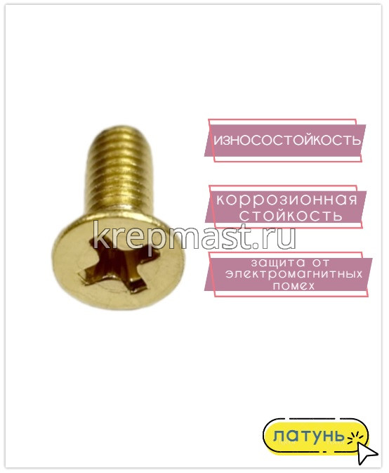 Винт латунный с полукруглой головкой DIN 965 М 4 х 10 используется в случае, когда необходимо создать немагнитный узел. Латунный винт применяется в приборостроении, авиации, атомной промышленности. Латунный крепеж стоек к органическим кислотам и углекислым растворам.