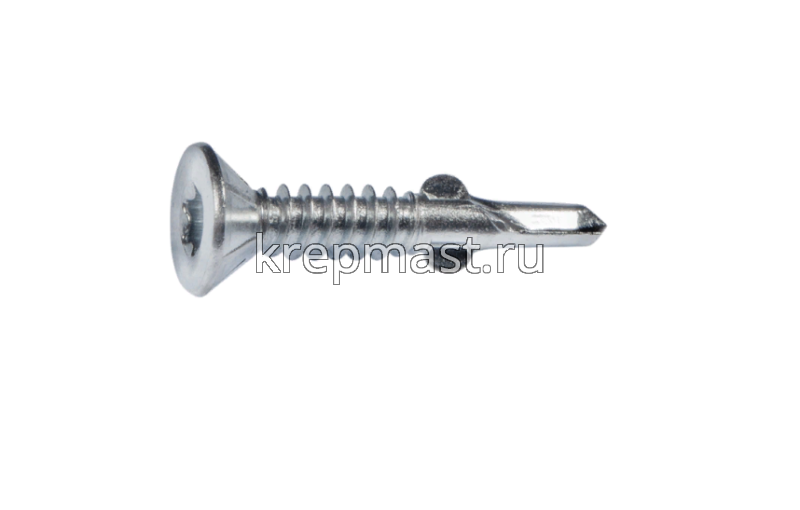 Саморез кровельный ТХ30 с ушками без шайбы DIN 7504 P 6,3х80 потай. - сверло оцинк. Rusconnect применяется для крепления деревянной доски к металлической обрешетке. На острие самореза находится бур с двумя выступающими "ушками", которые свободно проходят через древесину и обламываются, когда саморез достигает металла. На нижней стороне потайной головки есть несколько выступов предназначенных для самозенковки и аккуратного утапливания заподлицо с поверхностью. Помимо досок данными саморезами можно крепить фанеру, ДСП и плиты МДФ.