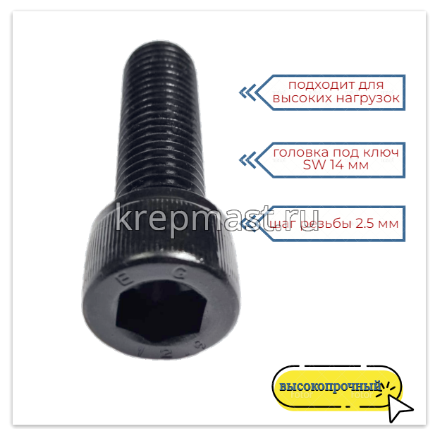 Винт с внутр.шестигранником 18 х 60 черный кл.пр.12.9 п/р DIN 912 в интернет-магазине «Мастер Крепежа» по цене 263 руб. Более 5 наименований товаров в наличии в категории Винт с внутр.шестигранником 18мм. Купить винт с внутр.шестигранником 18 х 60 черный кл.пр.12.9 п/р din 912 в Зеленодольске выгодно Вы можете on-line на нашем сайте, или отправив заявку по почте, а также по телефону или в пункте выдачи компании г. Казань, ул. Татарстан, 9, магазин "Мастер Крепежа". Доставка по Республике Татарстан и другие регионы РФ.