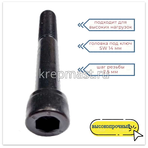 Винт с внутр.шестигранником 18 х120 черный кл.пр.12.9 н/р DIN 912 в интернет-магазине «Мастер Крепежа» по цене 450 руб. Более 5 наименований товаров в наличии в категории Винт с внутр.шестигранником 18мм. Купить винт с внутр.шестигранником 18 х120 черный кл.пр.12.9 н/р din 912 в Зеленодольске выгодно Вы можете on-line на нашем сайте, или отправив заявку по почте, а также по телефону или в пункте выдачи компании г. Казань, ул. Татарстан, 9, магазин "Мастер Крепежа". Доставка по Республике Татарстан и другие регионы РФ.