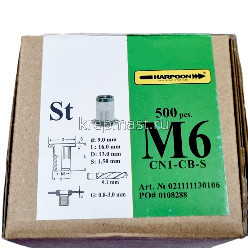 Гайка-заклепка HARPOON М 6 х 16,5мм CN1-CB-S цилиндрический борт, первая длина в Зеленодольске