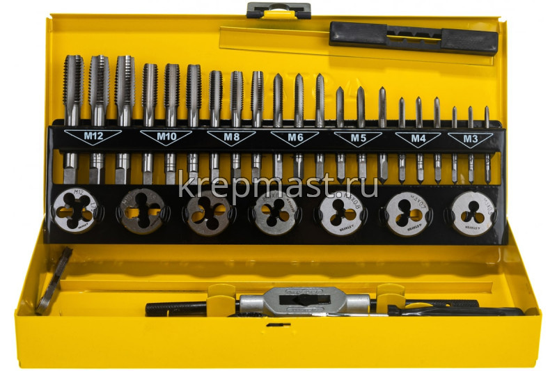 Лерки -метчики STAYER набор 32шт М3-М12 создан для получения чистой внешней и внутренней резьбы. Метчики и плашки изготовлены из стали, которая отличается высокой прочностью и износостойкостью. Для удобства хранения и транспортировки комплект поставляется в прочном металлическом кейсе.