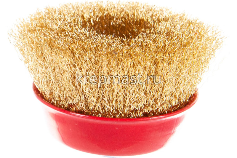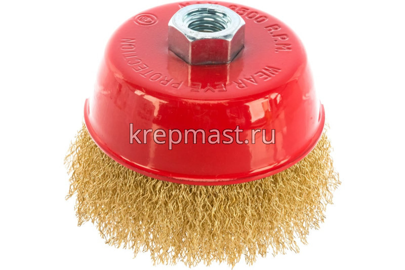 Корщетка-чашка USP 100 мм М14 латунированная проволока используется для шлифовальных и обдирочных работ в угловых шлифовальных машинах. Оснастка крепится к инструменту при помощи гайки М14. Рабочая поверхность щетки — волнистая латунированная проволока.