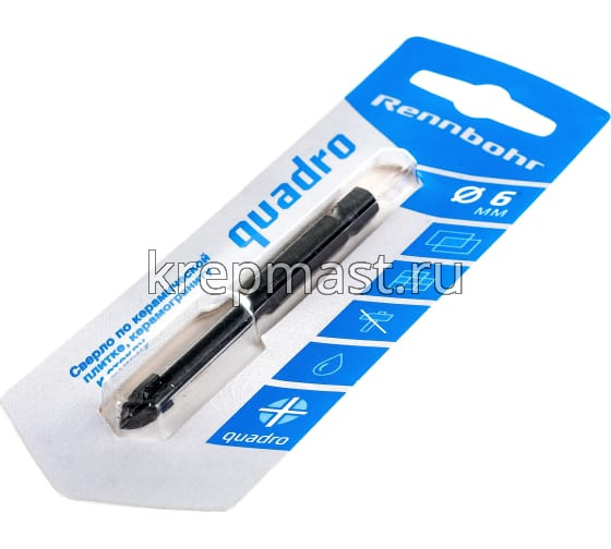 Сверло четырехгранное по стеклу HAGWERT 6 мм применяется для сверления отверстий в керамической плитке 1-4 класса твёрдости, керамограните, стекле. Твердосплавная напайка сверла по керамике квадро изготовлена из карбид-вольфрамового сплава. Количество граней сверла по плитке Quadro — 4. Сверление следует проводить на низких скоростях с достаточным охлаждением сверла и места сверления.
