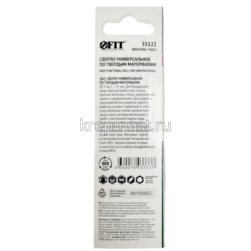 Сверло универсальное 4х75мм (сталь, чугун, цв.мет, стекло, керамогранит) в интернет-магазине «Мастер Крепежа» по цене 136 руб. Более 13 наименований товаров в наличии в категории СВЕРЛА универсальные (опалубочные). Купить сверло универсальное 4х75мм (сталь, чугун, цв.мет, стекло, керамогранит) в Зеленодольске выгодно Вы можете on-line на нашем сайте, или отправив заявку по почте, а также по телефону или в пункте выдачи компании г. Казань, ул. Татарстан, 9, магазин "Мастер Крепежа". Доставка по Республике Татарстан и другие регионы РФ.