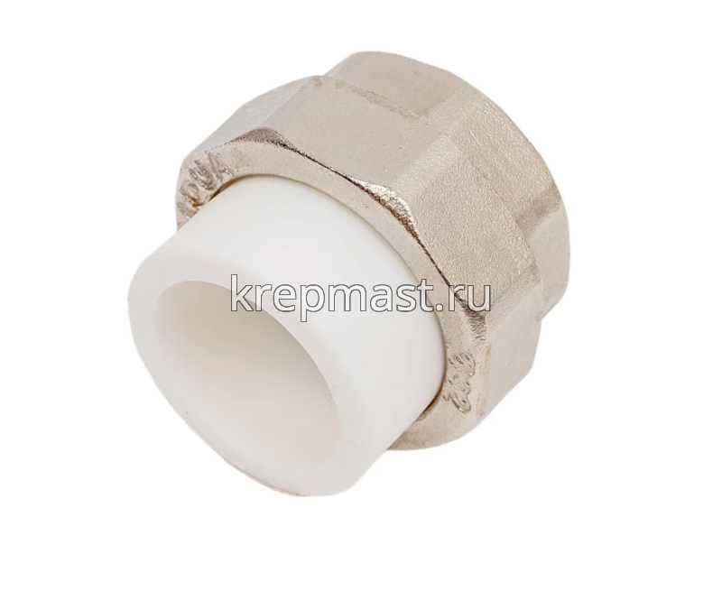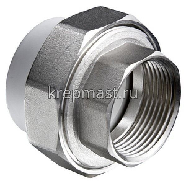 Комбинированная разъемная муфта (американка) ВР D 32-1 1/4 - разъемная муфта состоит из двух элементов, один из которых приваривается к полипропиленовой трубе посредством раструбной сварки, другой - соединяется с оборудованием или арматурой при помощи трубной резьбы.