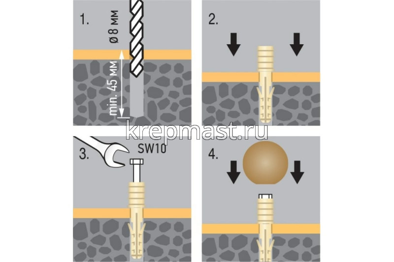 Ограничитель дверной ЕВРОПАРТНЕР коричневый - комплект, состоящий из нейлонового дюбеля, установочного нержавеющего шурупа и декоративного сферического ограничителя различных расцветок. Ограничитель диаметром 35 мм изготовлен из износостойкого эластомера. Крепление к полу осуществляется при помощи шурупа и дюбеля.