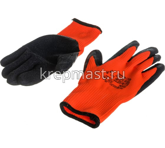 Перчатки акриловые утеплённые с рельефным латексным покрытием изготовлены из синтетического материала, без швов. Утепленные перчатки имеют махровую внутреннюю поверхность, которая обеспечивает дополнительную защиту рук от холода