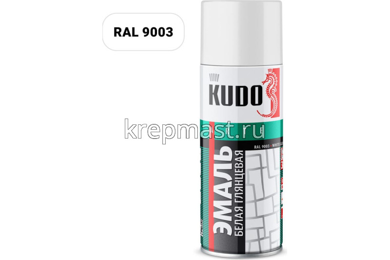 Краска KUDO белая матовая RAL 9003 - высокопрочная универсальная матовая аэрозольная эмаль в баллончике, предназначенная для окраски предварительно загрунтованных металлических и деревянных поверхностей. Аэрозольная краска легко наносится на труднодоступные места. Образует долговечное покрытие с хорошей укрывистостью, атмосферостойкостью, превосходной адгезией к окрашиваемой поверхности. Применяется для наружных и внутренних работ.