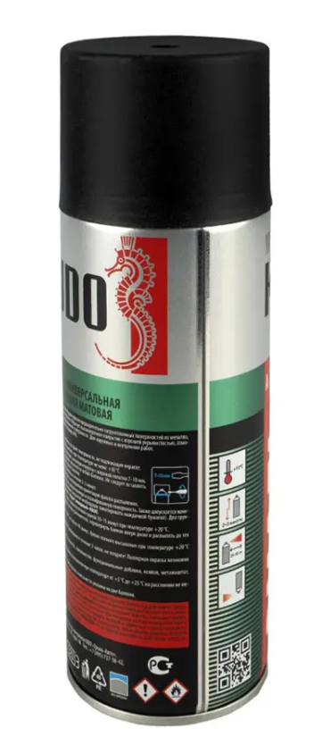 Краска KUDO черная RAL 9005 матовая - высокопрочная универсальная матовая аэрозольная эмаль в баллончике, предназначенная для окраски предварительно загрунтованных металлических и деревянных поверхностей. Аэрозольная краска легко наносится на труднодоступные места. Образует долговечное покрытие с хорошей укрывистостью, атмосферостойкостью, превосходной адгезией к окрашиваемой поверхности. Применяется для наружных и внутренних работ.
