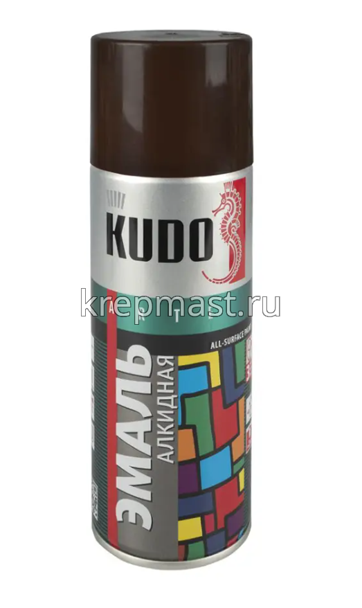 Краска KUDO коричневая RAL 8017 - высокопрочная универсальная глянцевая аэрозольная эмаль в баллончике, предназначенная для окраски предварительно загрунтованных металлических и деревянных поверхностей. Аэрозольная краска легко наносится на труднодоступные места. Образует долговечное покрытие с хорошей укрывистостью, атмосферостойкостью, превосходной адгезией к окрашиваемой поверхности. Применяется для наружных и внутренних работ.