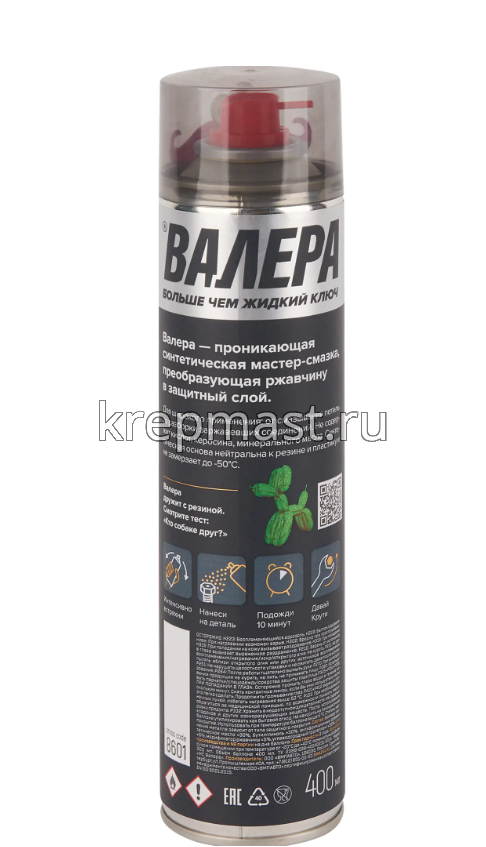 Смазка-мастер ВАЛЕРА 400мл флакон аэрозоль в интернет-магазине «Мастер Крепежа» по цене 796 руб. Более 16 наименований товаров в наличии в категории Смазки / спреи. Купить смазка-мастер валера 400мл флакон аэрозоль в Зеленодольске выгодно Вы можете on-line на нашем сайте, или отправив заявку по почте, а также по телефону или в пункте выдачи компании г. Казань, ул. Татарстан, 9, магазин "Мастер Крепежа". Доставка по Республике Татарстан и другие регионы РФ.