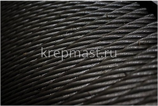 Благодаря цинковому покрытию стальной трос устойчив к образованию коррозии. Материал сердечника - пенька, пропилен, капрон.