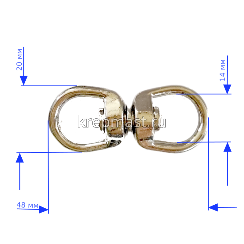 Вертлюг 3,8 мм —соединительное звено двух частей механизма (или звеньев цепи), позволяющее каждой из них вращаться вокруг своей оси, например звено между подъёмным механизмом и грузом. Предотвращает скручивание веревки, тем самым избавляет от лишних нагрузок.